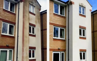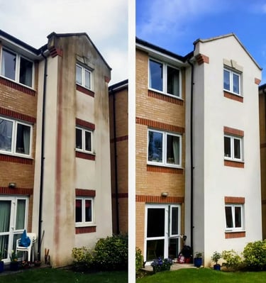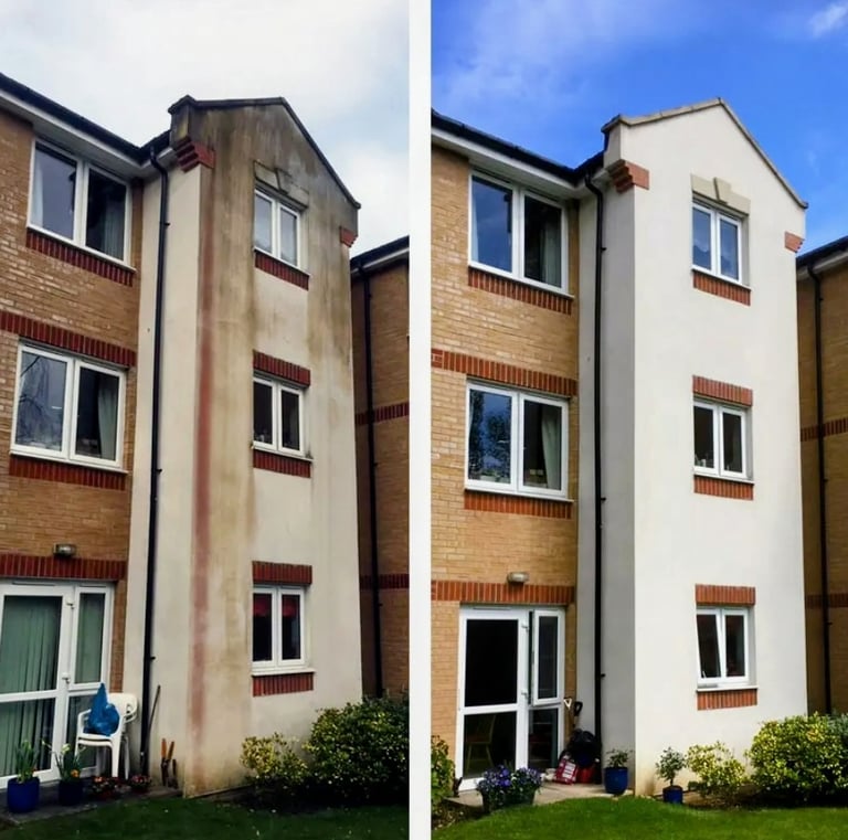 Soft washing using safe, low-pressure methods to remove algae, moss, and staining from render, leaving your property looking clean and refreshed without damage.
