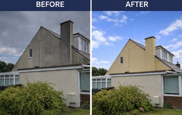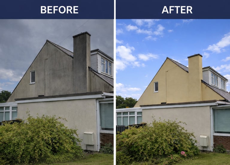 Soft washing using safe, low-pressure methods to remove algae, moss, and staining from render, leaving your property looking clean and refreshed without damage.