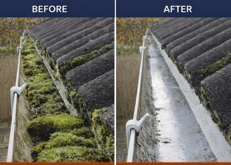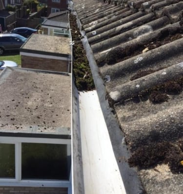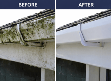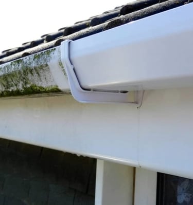 Gutters and downpipes cleared using a gutter vacuum system to prevent blockages, leaks, and water damage.