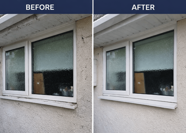Pure water window cleaning for streak-free glass, frames, and sills — safe, effective, and ideal for regular maintenance.